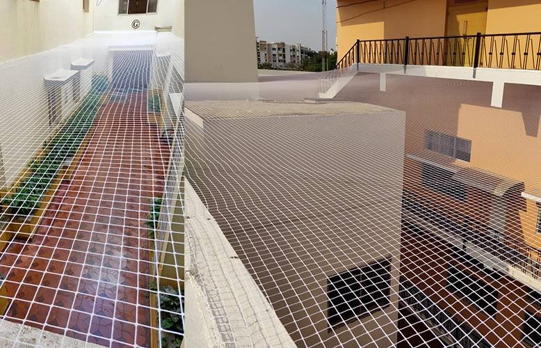 Pigeon Safety Nets are Professionals in Fixing School or Open Space Safety Nets in Bangalore, You Can Search Online for Children Safety, Staircase Safety, Elders Safety, Pets Safety, Kids Safety, Infants Safety to Get Us. We Use High Strength Anchor Bolts, Thick Border Ropes along with 2.5mm thick 30gap HDPE Nylon Net to give high protection.